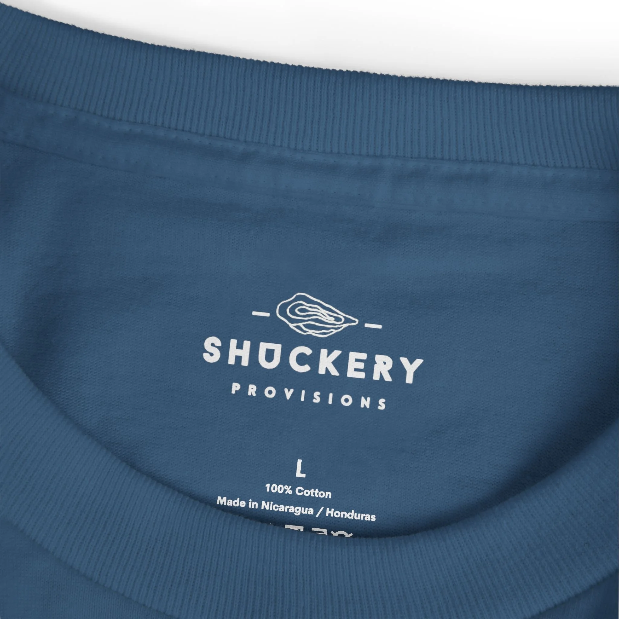 For those who believe the best mornings start with saltwater and shell. Wake, wade, and shuck. The Rise and Brine Oyster Tee is for early risers who chase tides instead of trends. Featuring a hand-drawn oyster platter with an edge, it’s soft, coastal, and unapologetically briny. Throw it on with wet hair and yesterday’s jeans.